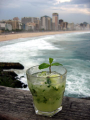 Based on the advertising, you might expect the caipirinha to be an urban, blandly sophisticated drink, but it has an assertive undertaste that my tasting panel described as "slightly straw-like". This is only fitting since, contrary to its hip image, the caipirinha was originally a rural refreshment (caipira means "countryman"). These Brazilian countryfolk knew how to kill a thirst stone-dead. With cubes of lime floating in crushed ice, the caipirinha looks pretty and tastes wonderfully refreshing.